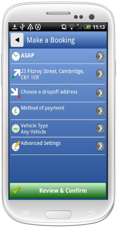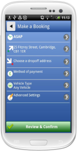 enter the destination and the time then press book, it really is that simple! Once you have booked the taxi you can track it in